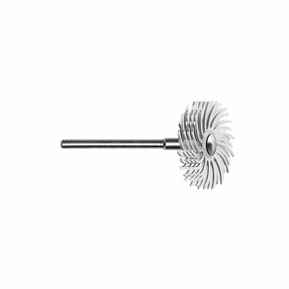 Dedeco SUNBURST RADIAL DISCS generate minimal dust and heat and eliminate the need for polishing compound. No matter what the material being worked, SUNBURST RADIAL DISCS are the absolute best for finishing and polishing hard-to-access areas without removing detail or causing flat spots. The sharp, clean, specially treated ceramic abrasive grain imbedded throughout their thin flexible bristles enable them to work faster and last-longer than rubber wheels, brushes, buffs and conventional sanders. Recommended operating speeds for most applications is 3,000 RPM to 18,000 RPM (5,000 RPM for woodworking). Lower speeds allow a softer touch, greater flexibility and more subtle results. Higher speeds provide more aggressive material removal. Using the tips of the bristles with light pressure maximizes disc life.