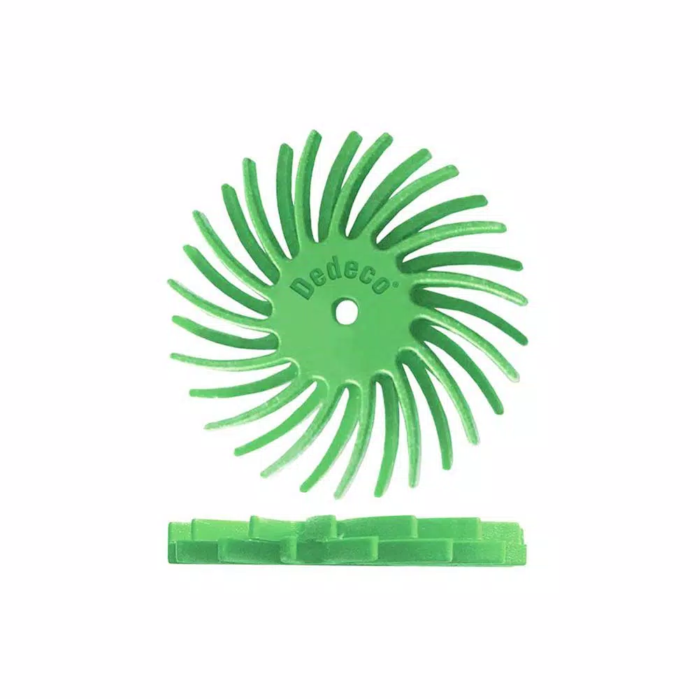 Perform your difficult tasks effortlessly with the selection of this highly durable Dedeco Sunburst Dual Radial Discs UltraFine Arbor Rotary Cleaning and Polishing Tool.