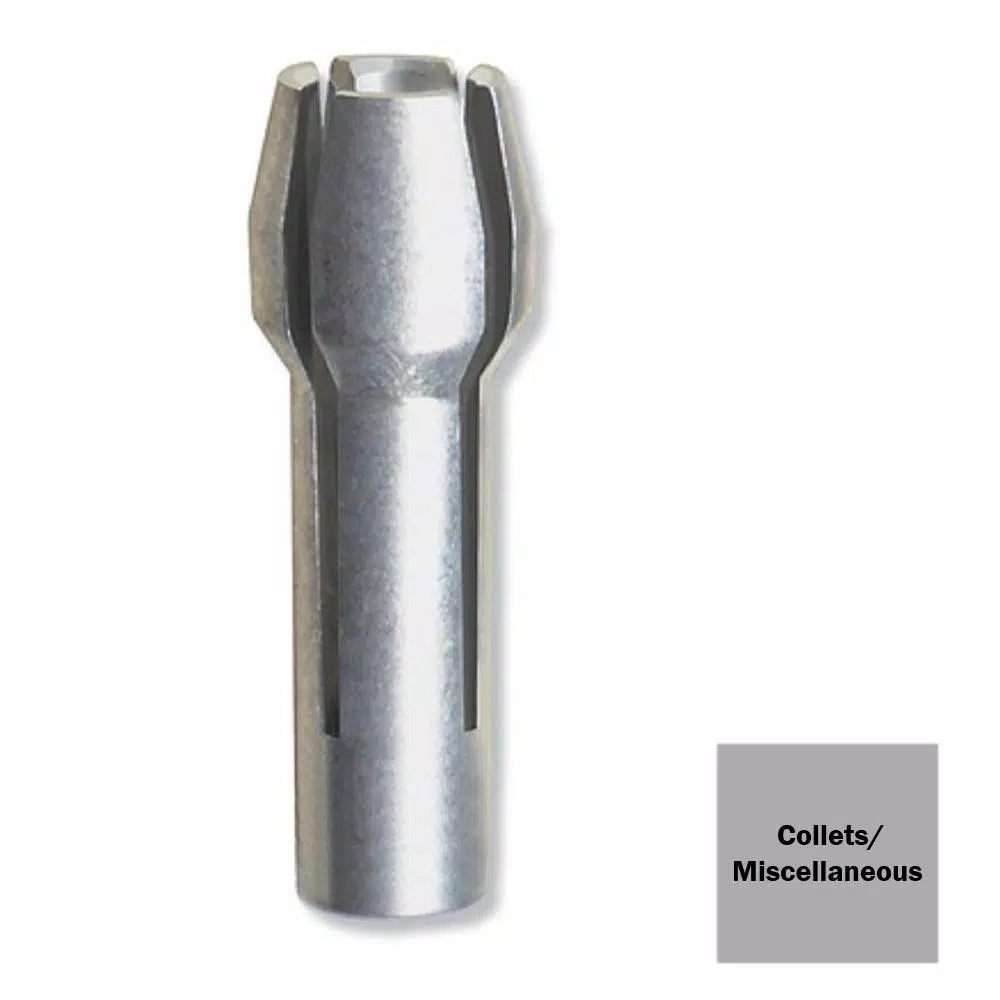 - Collet features small identification rings around its shank, these rings correspond with the size of the collet: 0 rings equal to 1/8 in., 3 rings equal to 3/32 in., 2 rings equal to 1/16 in., 1 ring equal to 1/32 in.