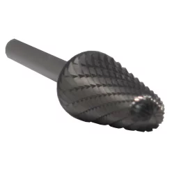 Drill America Solid Carbide Burs are designed for cleaning out material in a wide-range of products including wood, plastics, stainless steel and other metals. Solid Carbide Burs have a long tool life and faster cutting speeds than other substrates. They are double-cut style and have rows of cutting teeth in 2-intersecting directions for fast material removal and a rougher finish. Drill America Solid Carbide Burs come in many shapes and sizes. Shapes include ball, cone, flame, tree and cylindrical. Sizes range from 1/16 in. Dia to 1 in. Dia with round shanks. 6 length burs available in select shapes and sizes.