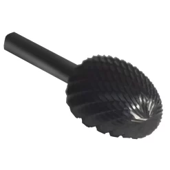 Drill America Solid Carbide Burs are designed for cleaning out material in a wide-range of products including wood, plastics, stainless-steel and other metals. Solid Carbide Burs have a long tool life and faster cutting speeds than other substrates. They are double-cut style and have rows of cutting teeth in 2-intersecting directions for fast material removal and a rougher finish. Drill America Solid Carbide Burs come in many shapes and sizes. Shapes include ball, cone, flame, tree and cylindrical. Sizes range from 1/16 in. Dia to 1 in. Dia with round shanks. 6-length burs available in select shapes and sizes.