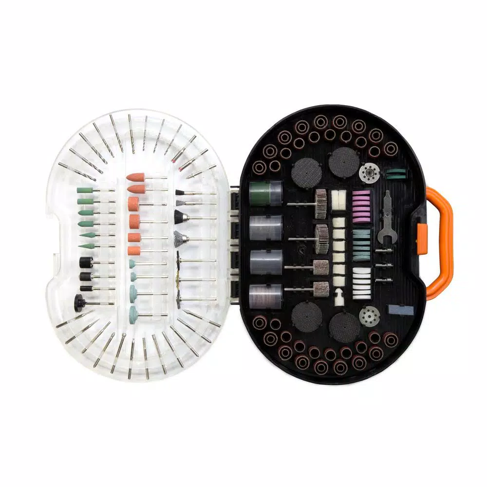 Remember when you had the perfect companion for your WEN Rotary Tool. Grind, polish, cut, engrave, carve, sand and a bunch of other verbs all with the WEN 327-Piece Rotary Tool Accessory Kit. This assortment of bits, discs, brushes, drills and bands comes in an easy-to-organize carrying case, complete with onboard storage slots for each individual bit. Although this kit was created with the WEN rotary tool series in mind, the 1/8 in. shanks allow for compatibility with the majority of rotary tools on the market. This package includes a brass brush, 3 steel brushes, 3 nylon brushes, 2 diamond-coated saw blades, 12 diamond-coated bits, 18 grinding discs, 16 fiberglass cut-off wheels, 10 stone grinding bits, 9 high speed steel drill bits (1/16 in., 3/32 in., 1/8 in.), 7 mandrels, 6 rubber grinding bits, 2 rubber grinding wheels, 9 felt wheels (1 in. x 1/4 in., 1/2 in. x 1/4 in., 3/8 in. x 3/4 in.), four 80-grit flap wheels, 131 sanding discs, 36 cut-off wheels (1 in. x 1/32 in., 15/16 in. x 1/60 in.), 52 spindle sanding bands (1/4 in., 3/8 in., 1/2 in. Dia), 3 collets (1/16 in., 3/32 in., 1/8 in.), a dressing stone, a wrench, and a bottle of polishing compound. Remember when you could take on a variety of projects all with 1 accessory kit. Remember WEN.