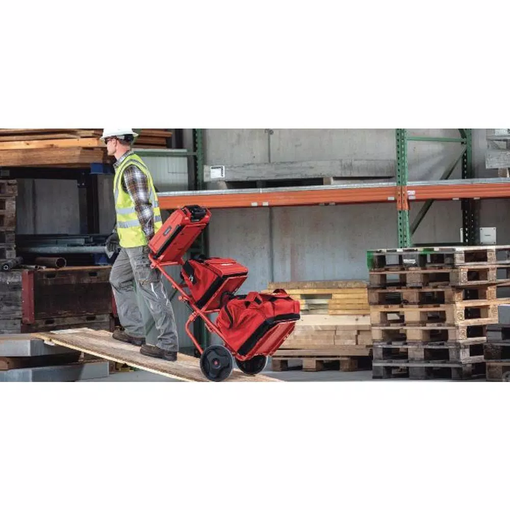 Not your average dolly, the new Hilti REDiPAK folding hand truck/dolly will redefine the way you work with its transportation solutions. Designed specifically with contractors in mind, the versatile, 3 layers can withstand heavy weights and hold an infinite collection of jobsite essentials. Packaged with 2 tie-down straps to help secure bulky materials. The top layer features a unique locking feature that transforms the cart into a convenient mobile work station.