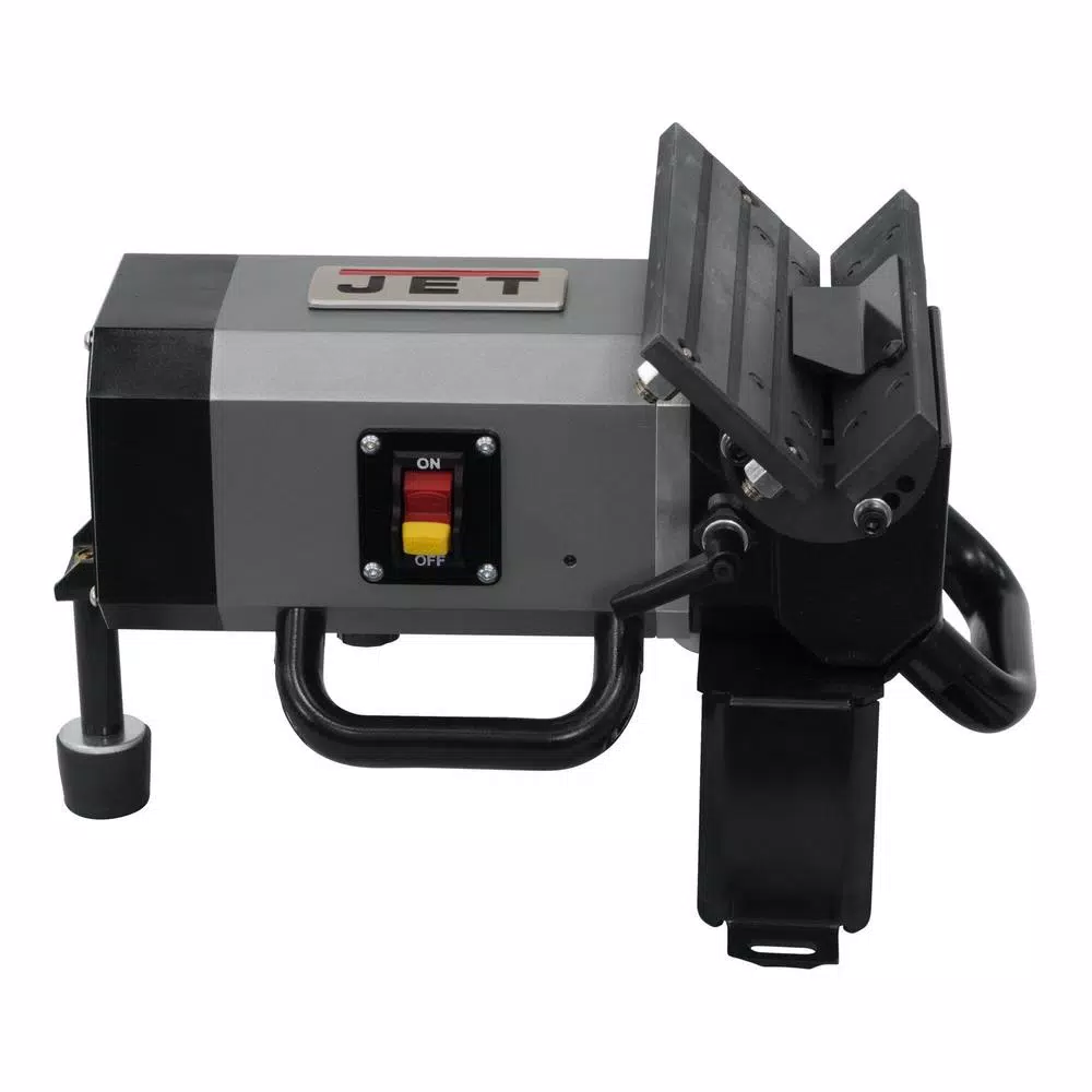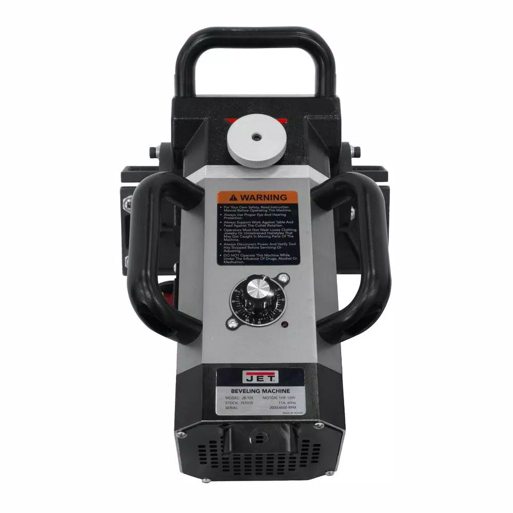 Weighing roughly 20 lbs. the JET JB-10R is designed to produce both straight and round corner edge bevels and is equipped with a 1-horsepower brushless motor for powerful torque at every speed. The milling type cutter heads with carbide inserts provide precision beveling giving your piece a pristine finish or a clean cut for a stronger weld. R3 and R5 Indexable Inserts included, providing 2 curved radius beveling options.
