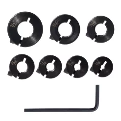 Introducing the 7-Piece Drill Bit Stop Collar Set by POWERTEC. This impressive collection of bit stop collars create the perfect drill holes with high precision and uniform depth for your portable drilling and woodworking applications. They feature a split ring design used to control the depth of the hole you are drilling – eliminating over and under drilling. This also helps to provide a secure, dependable grip around the diameter of your drill bit – delivering quick and easy utility. PREMIUM DESIGN: Each collar is made with heavy-duty stainless steel for long-term durability. They will not mar your expensive drill bits as they never touch the bits. Unlike other brands, we have wisely marked each stop for easy bit identification and enhanced workflow. 7-pieces SET CONTAINS: 1/8 in. bit stop collar, 3/16 in. bit stop collar, 1/4 in. bit stop collar, 5/16 in. bit stop collar, 3/8 in. bit stop collar, 7/16 in. bit stop collar, 1/2 in. bit stop collar. INCLUDED BONUS: An Allen Wrench is supplied to help adjust and install/uninstall the stop bits and can also be used for other projects.