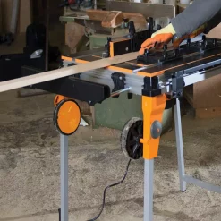 Large diameter rugged transit wheel attachment for the Triton TWX7 WorkCentre chassis, suitable for transit across uneven terrain. Grooved tread pattern running the circumference of the wheel, ensuring maximum traction at all times. Internal bush insert design keeps the wheels perfectly concentric to the axle, minimizing wear and tracking deficiencies. External wheel covers protect the axle and fastening components from dirt and debris. Durable ABS molded rugged transit handle. Pivot mounted for user comfort while in use. Large diameter handle mount ensures forces are distributed evenly during transit.
