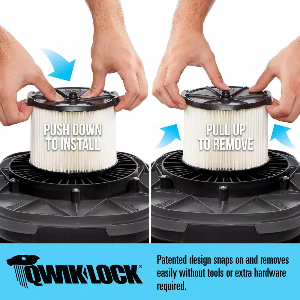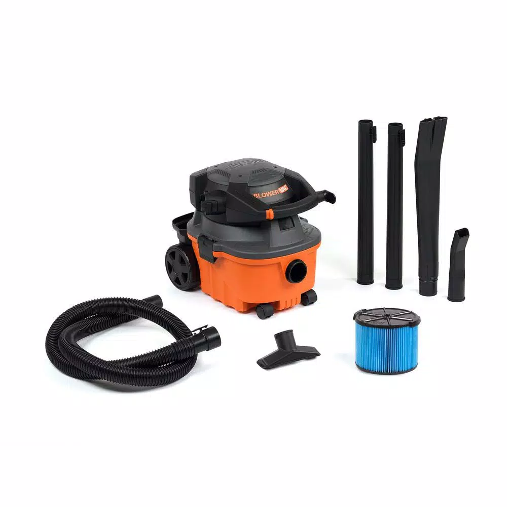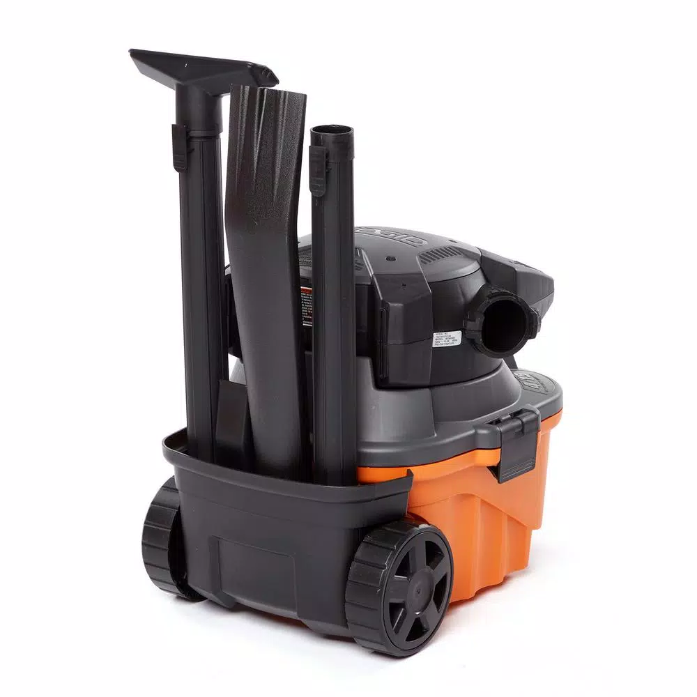 The RIDGID 4 Gal. wet dry vac is a multi-functional tool that combines portable power and a handheld blower. This compact powerhouse packs a heavy duty 6.0 peak horsepower rated motor to tackle even the messiest jobs. The power head of the wet/dry vacuum detaches and quickly converts into a handheld blower with a locking wand that outperforms most dedicated leaf blowers. The quick-release cord wrap lets you spend less time unwrapping the 20 ft. cord and more time on the job. The caddy conveniently keeps your accessories and the hose close at hand. It is 2 incredible tools in one.