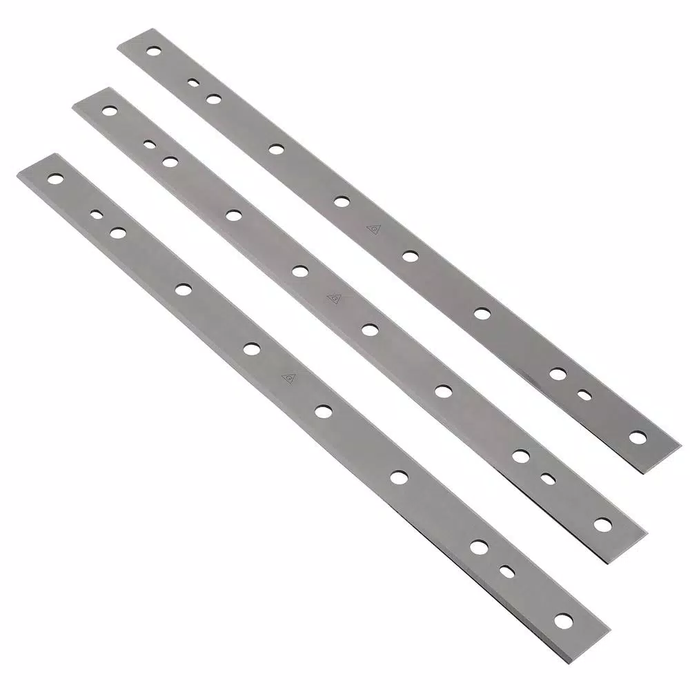 Restore your DEWALT DW734 planer to its original cutting prowess with these 12-1/2 in. replacement knives. The double-sided blades (3-pack) are fabricated with machined locator holes for no-hassle alignment in your power tool, while the M2 laminated high-speed steel construction fosters longer life so you get maximum use before flipping over to the other side.