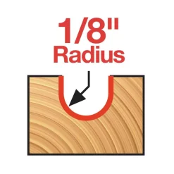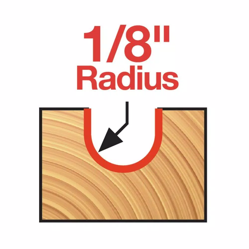 The Diablo 1/8 in. Carbide Round Nose Router Bit is ideal for engravings and decorative accents. Constructed from carbide and titanium, the bit features a reducing design that provides a safe, controlled cut.