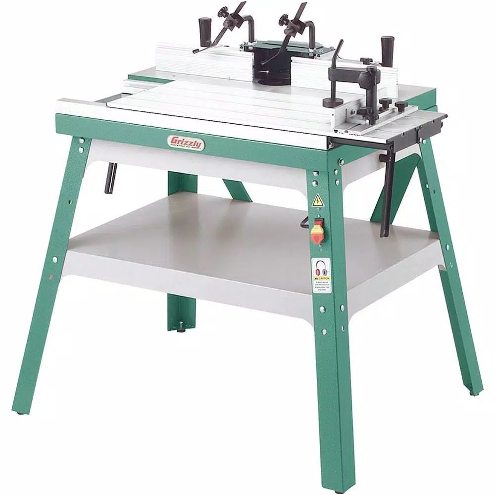 If you’ve already invested in a big router and lots of router bits, but want the benefits of a solid stationary shaper, then this Sliding Table Router Table is for you. The sliding table makes material processing much easier and safer, particularly when making raised panels or shaping short sides. The split fence is easy to adjust and provides full support along both sides of the workpiece. Other features include a 2-1/2 in. dust hood, tilt-up table for easy router access, universal router mount and sturdy stand with a convenient shelf. Last but not least, a large safety paddle switch in the frame allows you to turn the router ON/OFF without bending over and reaching under the table. Very convenient.