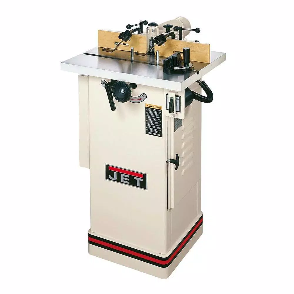 If you’re looking for a space-saving shaper for your shop, the new JET JWS-22CS Shaper is what you need. This compact powerhouse features a 7000 and 9000 RPM reversing 1-1/2 HP motor. The large 22-3/8 in. x 18-1/8 in. precision ground cast iron table provides a large, durable, work area. Safe, easy cutter set up is assisted by a positive detent spindle lock. The independent left and right fences feature micro-adjustment, and a built in 4 in. dust port. If you feel you just don’t have the space, the nominal 23 in. x 25 in. footprint of this workhorse is sure to change your mind. Put the new JET JWS-22CS Shaper in your shop today, you’ll know why JET products are “Built Better to Build Better”.