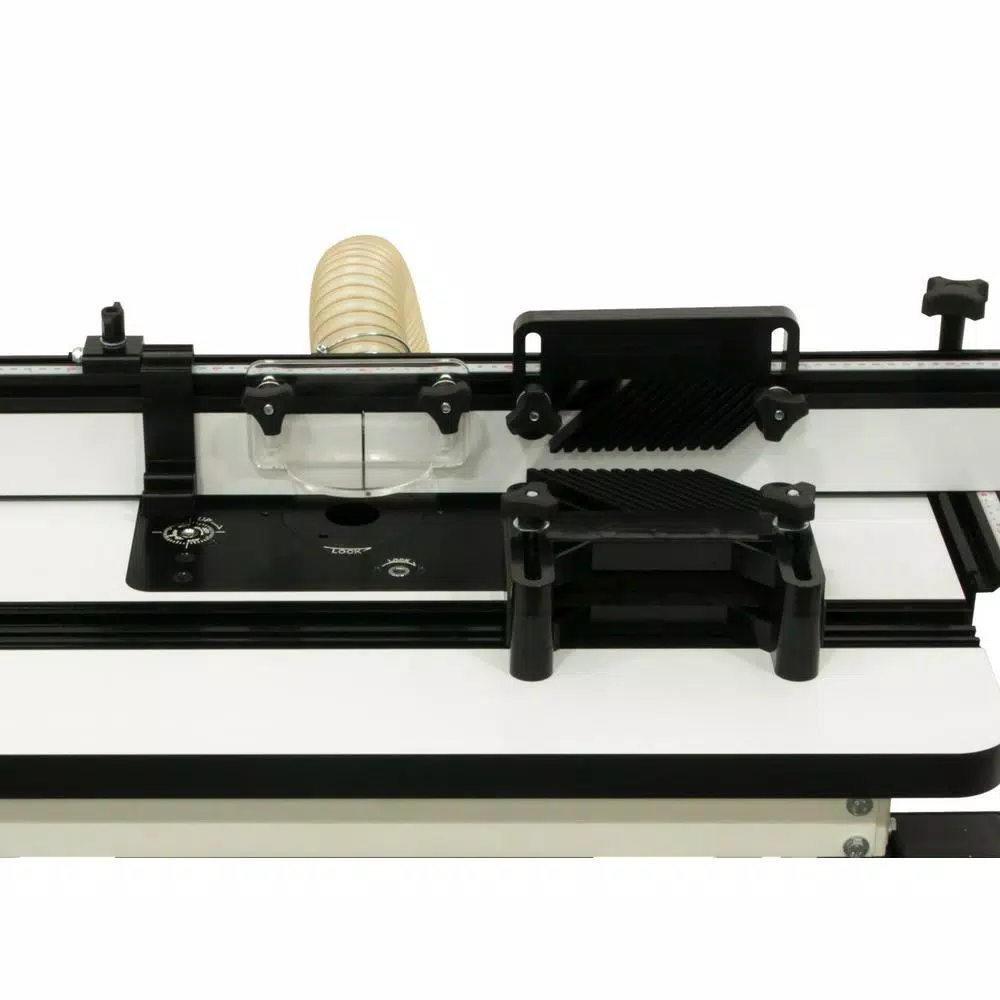 - Dust collection system that features an enclosed dust box around the router as well as dust collection in the fence at the point of cut