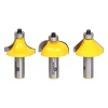 - Each router bit is equipped with a guide bearing, eliminating the need for an auxiliary bushing on the router