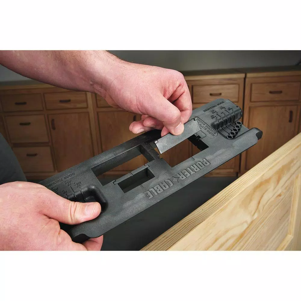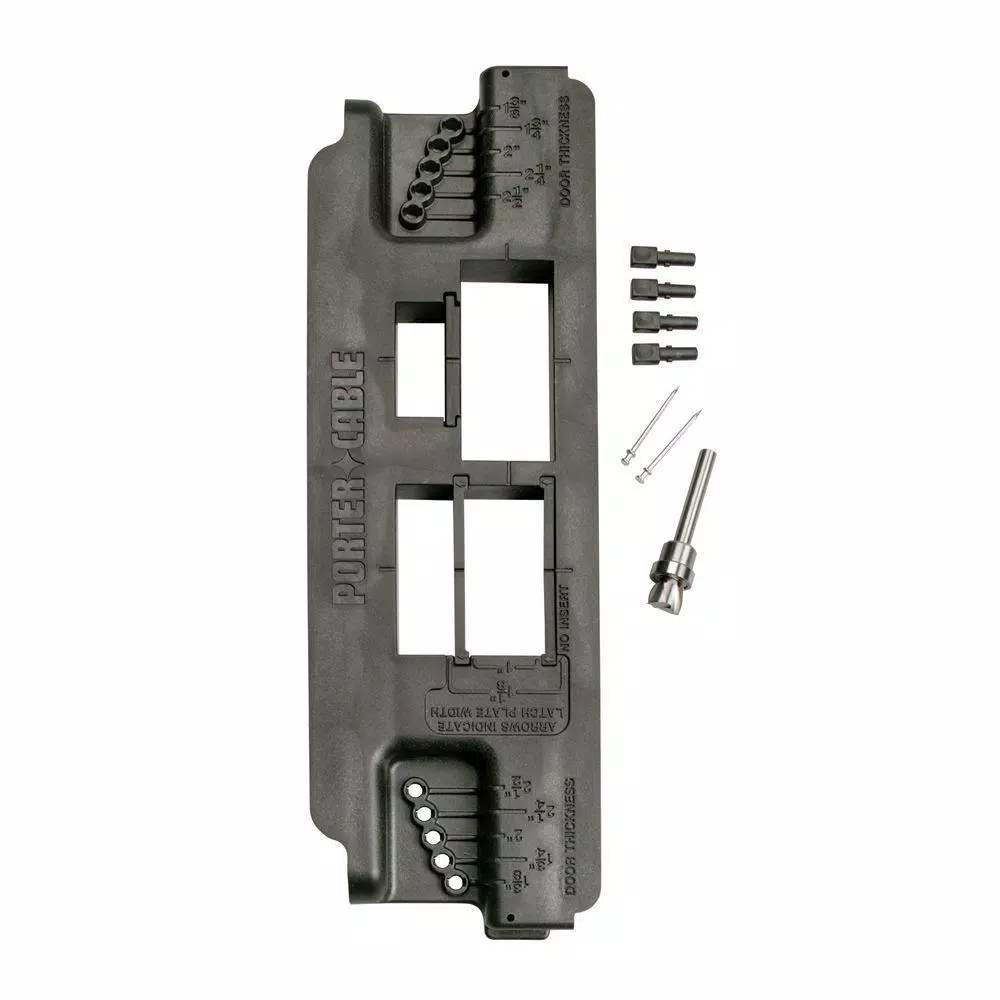 The Porter-Cable 59375 Template can used to rout both the strike and latch plate on doors and frames. Template center marks enable quick and easy alignment. Includes high-speed steel router bit.