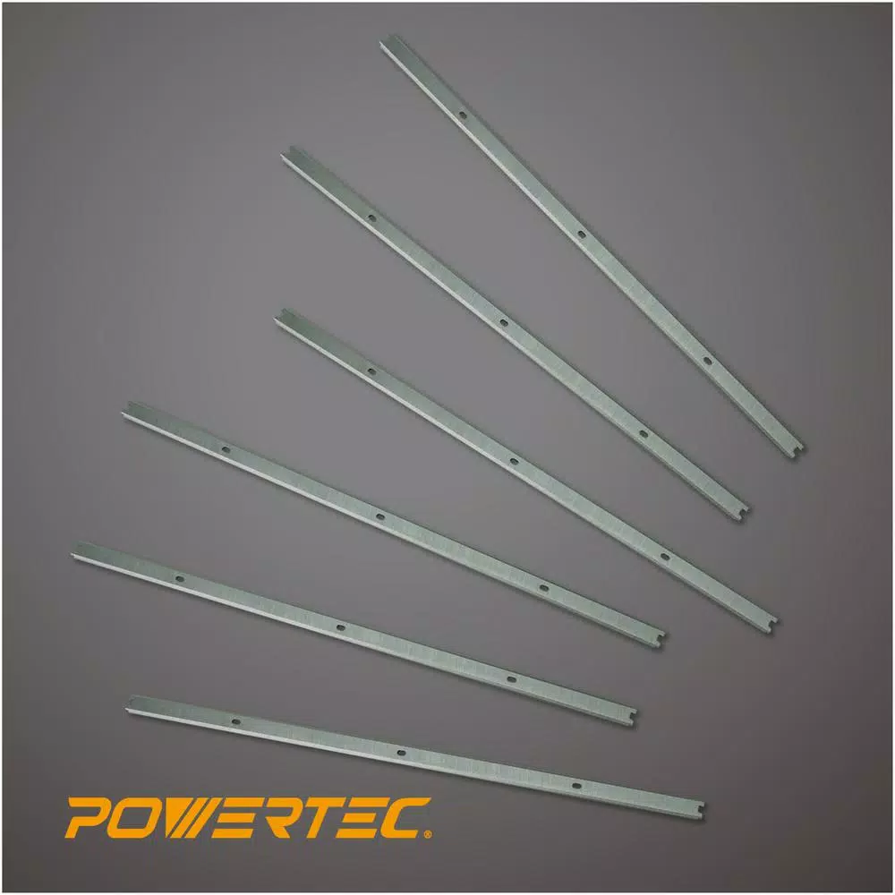POWERTEC USA High Speed Steel (HSS) Knives are more than the simple planer knives for replacement. The manufacturing process started with premium European HSS material, followed by strictly professional machining and quality control that ensure extreme sharpness, precision, balancing, and tight tolerance in every piece of POWERTEC HSS Knife product. The final Heat Treatment enhances the hardness and durability. POWERTEC’s goal is to maximize the cutting performance every thicknesser could possibly achieve. With the best quality, POWERTEC Planer Blades cut the wood efficiently and consistently and leave a smooth and flat surface on the woodworking workpieces, no matter softwood or hardwood. No matter pursuit for the true flatness or production efficiency, our HSS Blades are always at your service. Our tedious honing work ensures the cutting edge being ultra sharp and straight. The industrial-grade consistent cutting performance leaves only the finest planning result on the surface of the stocks. The POWERTEC planer blades are precisely machined to form the mounting holes and locator notches. Every blade has to go through strict quality control to make sure they will be accurately aligned and installed on the cutter head. The cutting edges are at both sides of the blade. When 1 edge went dull, simply by turning the blade 180° and re-installing it, you have fresh sharp cutting edge.