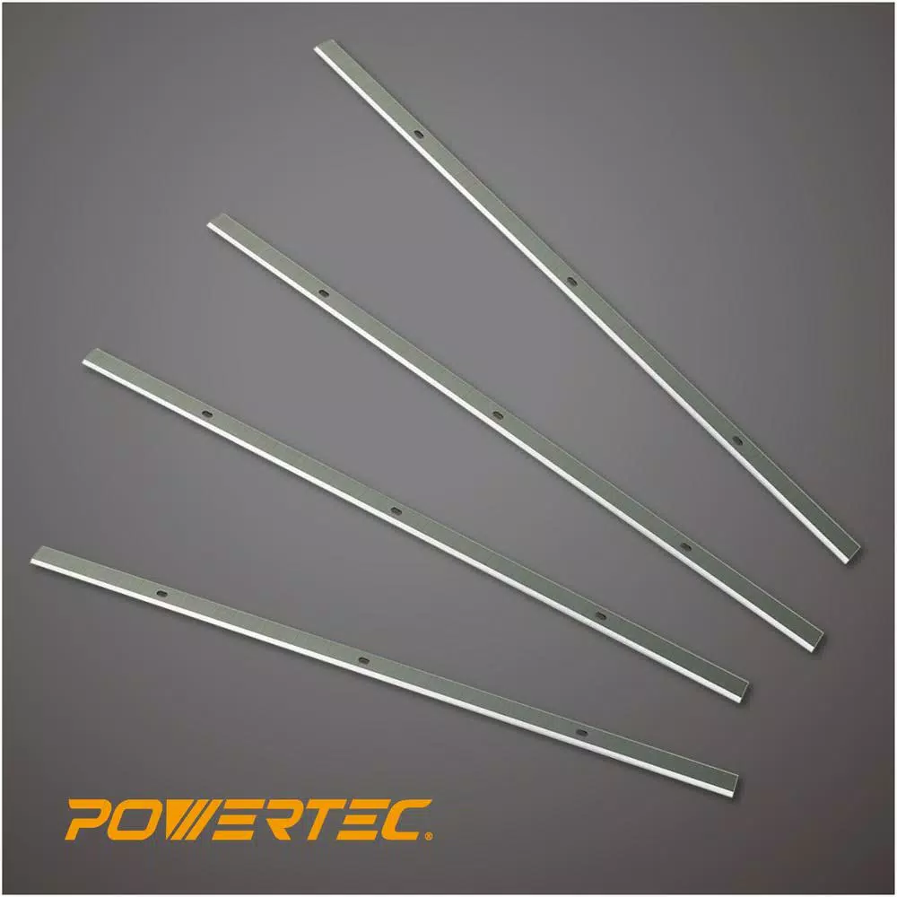 Introducing the 13 in. HSS Planer Knives (4 knives) by POWERTEC. These heat treated double sided replacement 13 in. planer knives are made to exceed the OEM product. The innovative manufacturing process begins with the usage of high speed steel (HSS). The blade’s high grade construction provides it with a hardness that is temperature resistant, while offering high wear resistance and anti-corrosive properties. Strict professional machining and quality control ensure superior sharpness, long lasting durability and precision cutting. Double Sided to Last Twice As Long: Our planer knives feature a dual-sided double edge blade designed to provide you with sustained planning on each side, before turning them over to the other side. Ultimately, this will help save you both time and money while delivering professional looking results for your woodworking projects. SPECIFICATIONS: Material: Premium High Speed Steel (HSS) from Europe, Size: 13-1/8 in. x 1/2 in. x 1/16 in., Cutting Edges: 2, Blades Per Set: 2, Package: POWERTEC Reusable/Storage Case Packaging. PRODUCT COMPATIBILITY: These replacement blades can be used exclusively for the Delta 22-549, 22-555, 22-580 Thickness Planer, Grizzly 13 in. Planer G0689 and Craftsman Planer 21743.