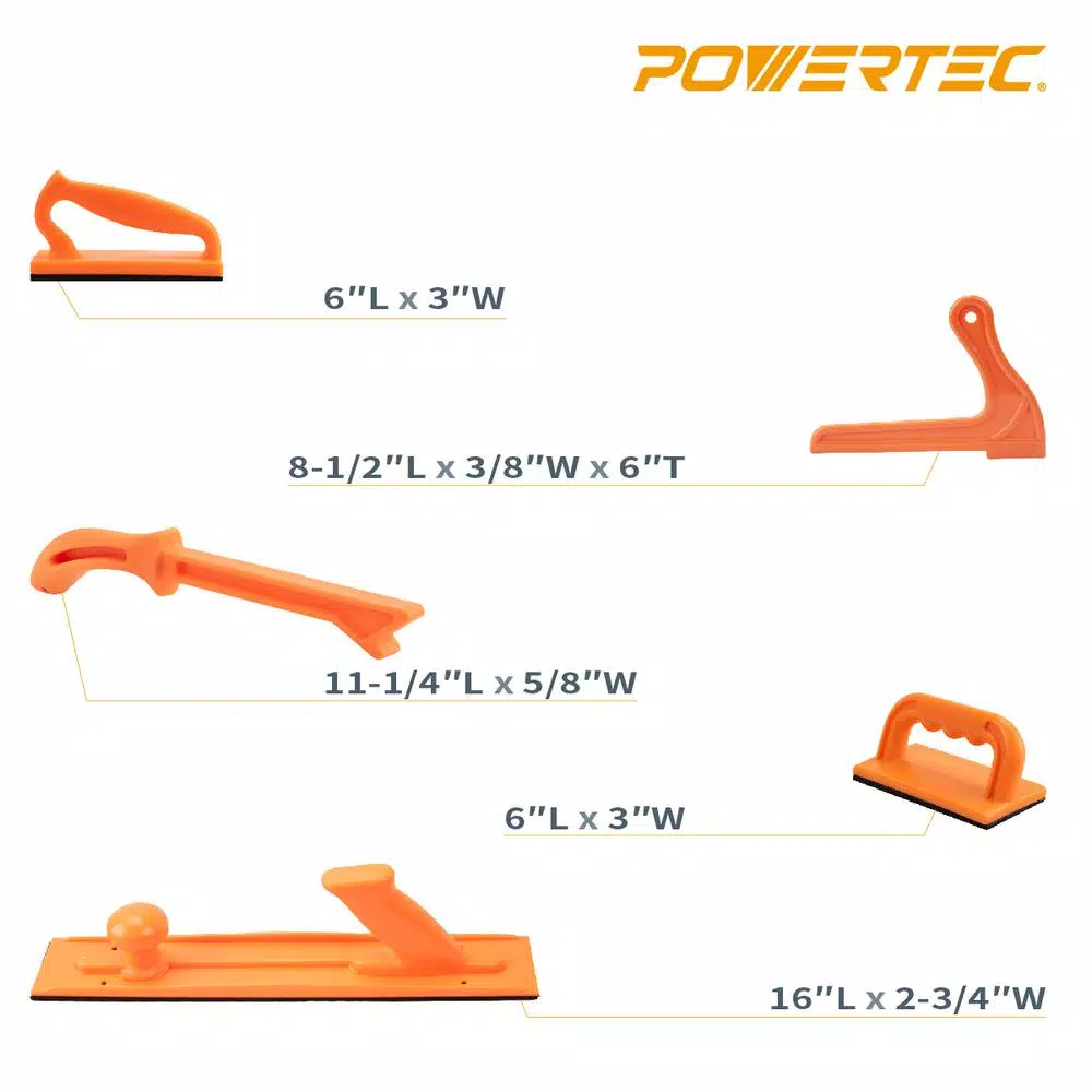 【The Max Grip Push Block and Push Stick Set by POWERTEC】 This well crafted and premium version safety orange push block & stick set includes 3 push blocks ( one long and two short ) and 2 push sticks ( one straight push stick and one v stick ). The push blocks ( often called push pads ) are essential for use on routers, jointers and table saws. The straight push stick is great for narrow stock or when space is limited. The V-shaped push stick ( sometimes called a V-type push stick or v-shaped putter ) is great when extruding, or needing to exert a more detailed control on your work piece, or if needing to get really close to the blade. Our exclusive woodworking push block and stick set is the perfect addition to any safety or woodworking tool set.