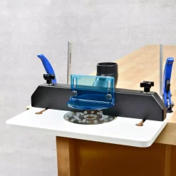 Introducing the Mini Trim Router Table Set by POWERTEC. This table top router table allows you to perform common router table task at home or any work site. It’s compact design is perfect for small routing applications and cutting, shaping your workpieces with high precision. The table is pre-drilled along the back edge, so that you’re able to add your own clamping strip for mounting on the edge of your table or workbench. The POWERTEC Trim Router Table is small, yet portable, sets up quickly and is extremely easy to mount. Able to accommodate many of your small woodworking projects and router table applications, the table comes with an acrylic base that not only provides a wide, leveled base for handheld work, it’s pre-drilled to fit many of the more popular trim routers on the market and will accept Porter Cable style guide bushings. The set comes with a see-thru bit guard for high visibility, while the removable fence is set up with a 2-1/2 in. ID dust port. Clamping knobs included, this set features everything you need to perform and execute many of your common routing task. Set Contains: 1 Trim Router Table, one 1/4 in. Thick Acrylic Base, 1 High-Visibility Bit Guard, 1 Removable Fence, (1) Dust Port, (2) T-Knobs, (1) Instruction Guide. Compatible Router Models: DeWALT: DWP611PK(Fixed/Plunge Base) / Makita: RT0701CX7(Fixed/Plunge Base) / Bosch: GKF125CEN, PR110, PR10E, PR20EVS / Ryobi: P601 / PORTER-CABLE: PCS6435.