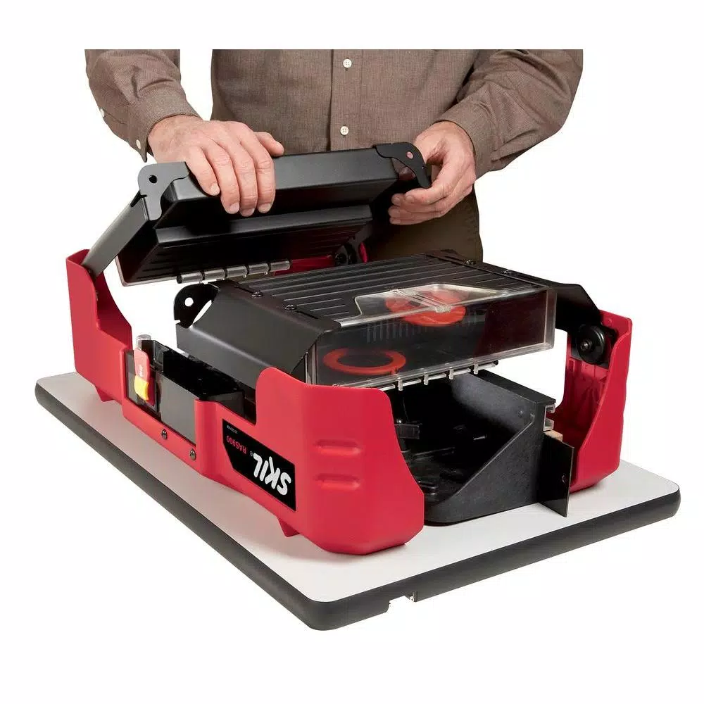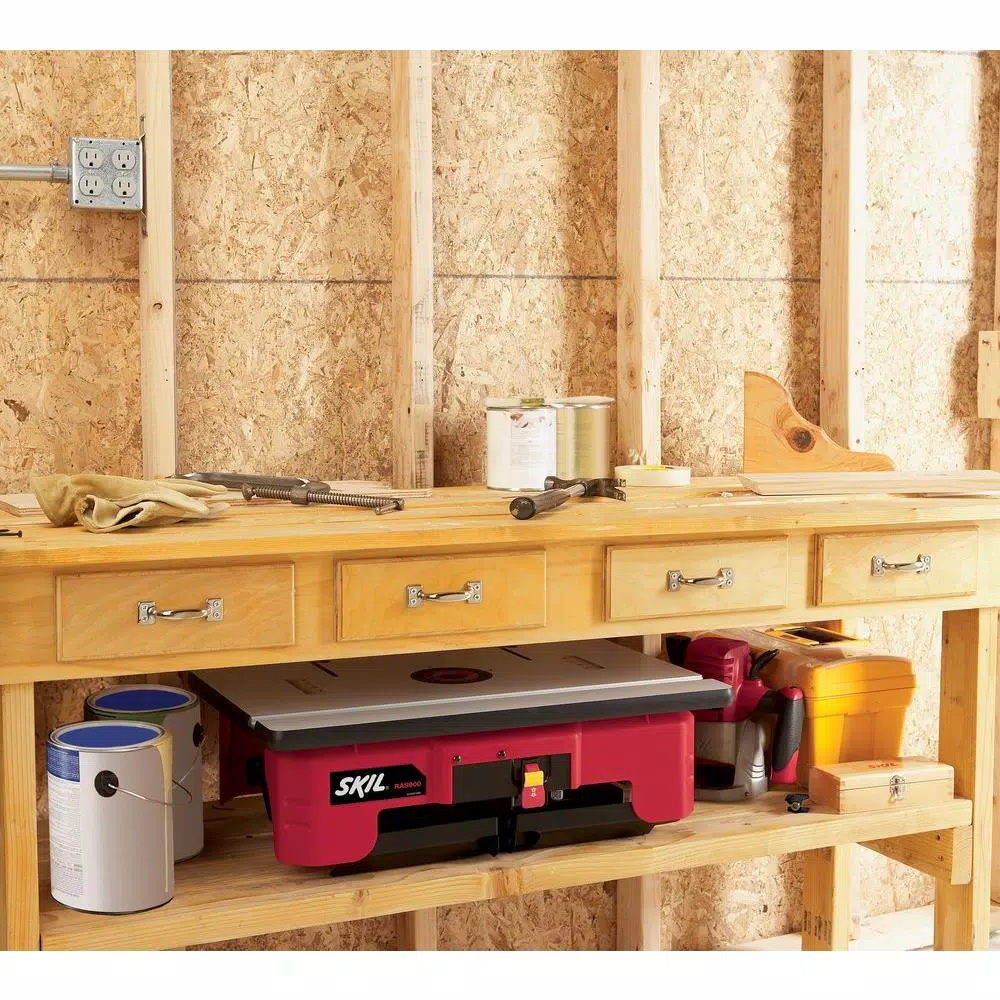 The RAS900 come pre-assembled with an integrated accessory storage bag and a laminated MDF top. The self-contained structure provides storage for necessary parts like the fence and router bits. Included with the RAS900 is a guard, feather board, miter gauge and bit inserts; along with a tall fence with adjustable laminated MDF faces; dual feather boards, a starter pin and guard for support when routing curved work pieces; a bit height gauge for easier bit setup and cutting precision, and additional accessory storage compartments. The RAS900 has a quick-release router mount that attaches and detaches in seconds. An efficient folding design means the table comes pre-assembled with minimal setup needed and legs fold for storage. Stability plus convenience makes this a great router table for any DIYer.